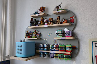 Eine kindgerechte und farbenfrohe Gestaltung schafft eine gemütliche Leseatmosphäre. Bequeme Sitzkissen laden zum Schmökern ein. Für noch mehr Spaß beim Zuhören und Entdecken stehen außerdem Tonie-Figuren mit spannenden Kindergeschichten und Wissenshörspielen für Kinder von 3 bis 8 Jahren zum Ausleihen bereit.