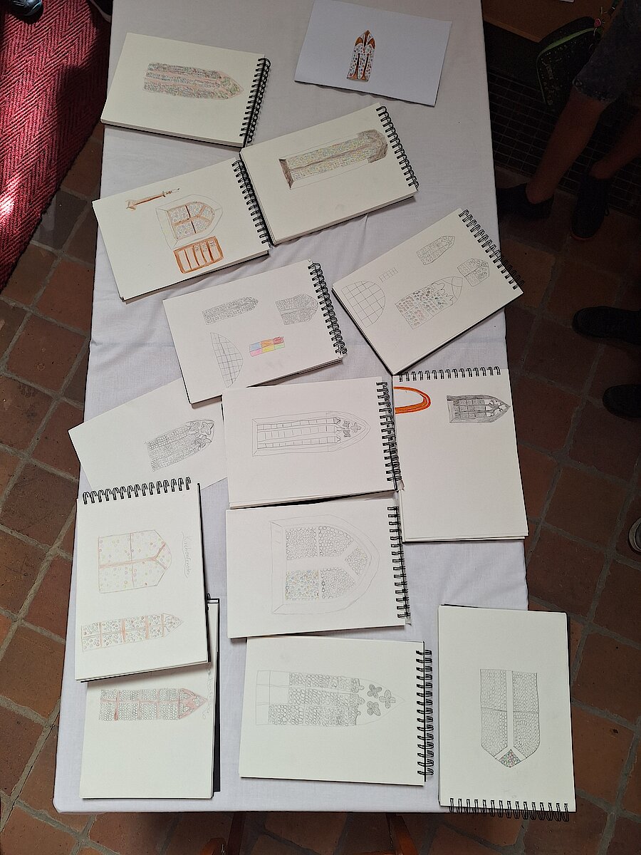 Zuerst haben wir die alten Fenster der Kirche genau angeschaut. Dabei haben wir überlegt: Was haben diese Fenster wohl im Laufe der Zeit alles gesehen? Gottesdienste, Feste, vielleicht sogar schwierige Zeiten? Aus diesen Gedanken heraus haben wir dann unsere eigenen Kirchenfenster gestaltet – mit Bildern von Dingen, die wir durch ein Fenster sehen oder gesehen haben, oder die wir uns vorstellen.