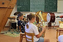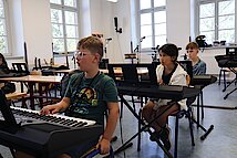 Traditionell beginnen unsere neuen 5. Klassen ihre erste Schulwoche mit dem Instrumentenkarussell in der Jugendkunstschule. Insgesamt 33 Schülerinnen und Schüler haben sich in diesem Schuljahr dafür entschieden, statt des regulären Musikunterrichts an den Band- und Bläserklassen teilzunehmen.
