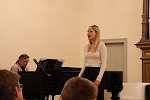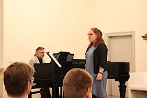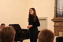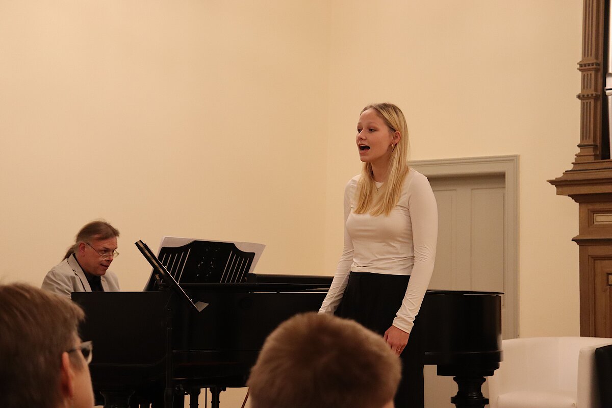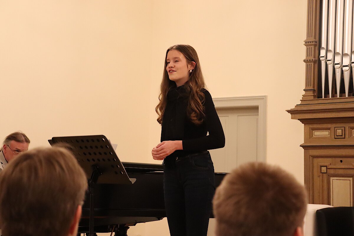 Es folgten weitere spannende Darbietungen, unter anderem von Emilia Bretschneider, die eine bezaubernde Musicalmelodie präsentierte, sowie Maria Lindner, die zwei Werke am Klavier spielte. Besonders hervorzuheben war ihre Darbietung des vierten Satzes aus der Parthia Nr. 1 von Christian Gotthilf Tag, einem bislang unveröffentlichten Werk des 18. Jahrhunderts. Diese Komposition, die vor rund 150 Jahren zuletzt aufgeführt wurde, wurde von unserem Klavierlehrer Tilo Kittel entdeckt und für die Aufführung vorbereitet, was der Darbietung einen besonderen historischen Wert verlieh.