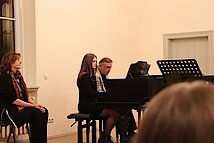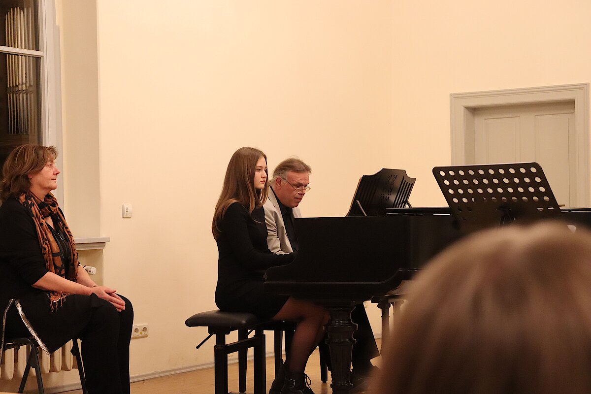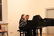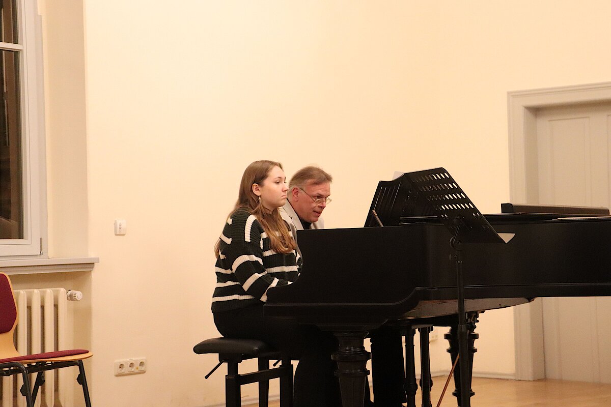 Den krönenden Abschluss des Abends bildete die Aufführung der dreisätzigen Sonatine in A-Dur von Anton Diabelli. Henriette Eger spielte das Stück zusammen mit ihrem Klavierlehrer Tilo Kittel vierhändig. Ihre präzise und einfühlsame Interpretation dieses lebhaften und klanglich reichhaltigen Werkes bildete einen perfekten Abschluss für diese abwechslungsreiche Musizierstunde.