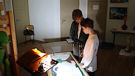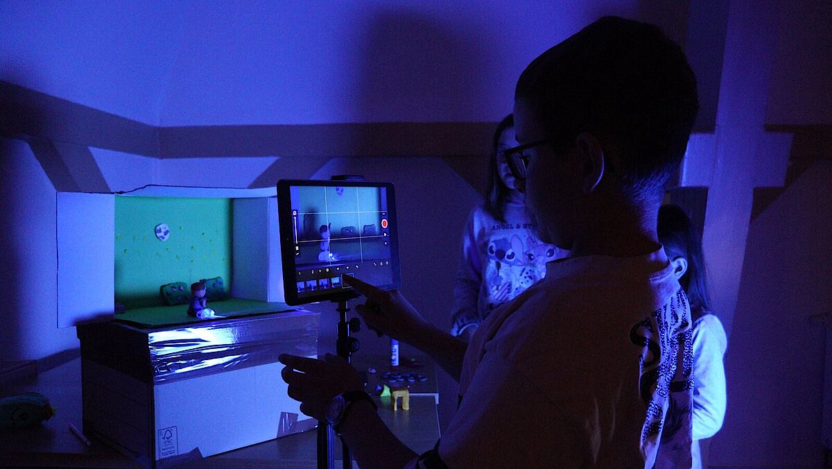 Unter der Leitung von Aaron Pfersdorf und Julia Richter bildeten die Teilnehmenden eigene Teams, um an den Animationstischen zu arbeiten und ihre Projekte selbstständig zu gestalten. Dabei entstanden ganz unterschiedliche Werke – von zweidimensionalen Zeichnungen über modellierte Knetfiguren bis hin zu LEGO-Animationen.